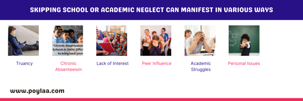 Skipping school or academic neglect can manifest in various ways:
