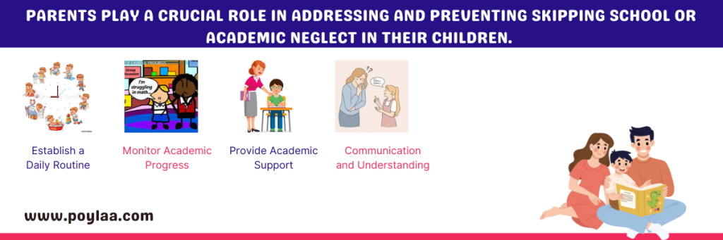 Parents play a crucial role in addressing and preventing skipping school or academic neglect in their children.